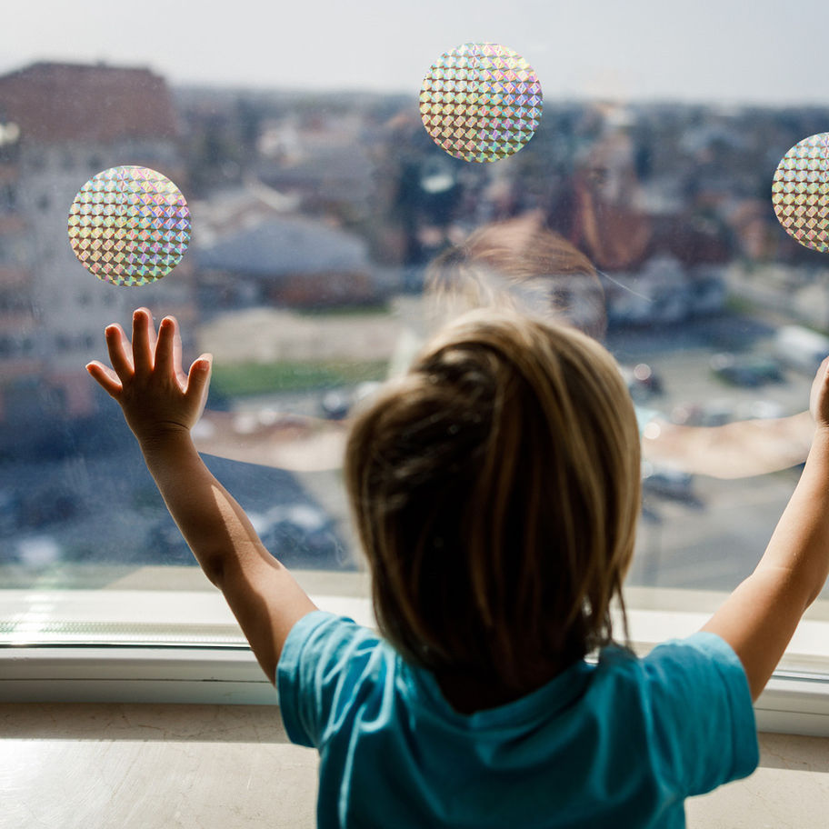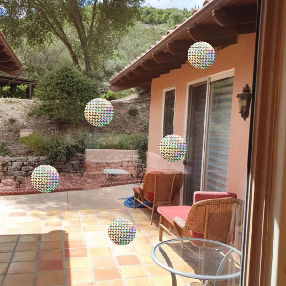 Protect your feathered friends and your windows with these holographic reflective bird deterrent decals. Designed to prevent bird strikes, these round window clings use light-reflecting PVC material to create an optical warning signal that birds can see—keeping them from flying into glass windows and doors.